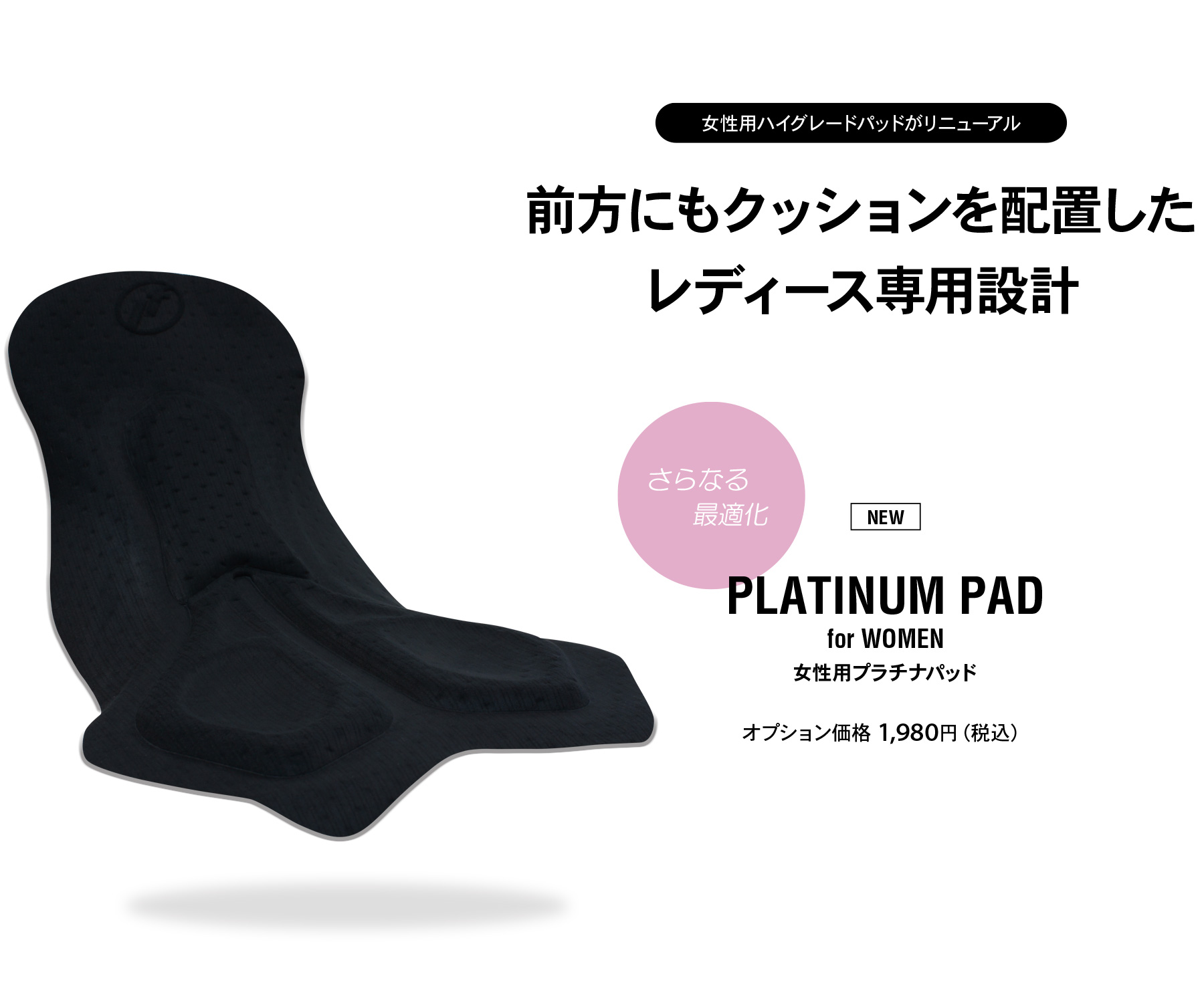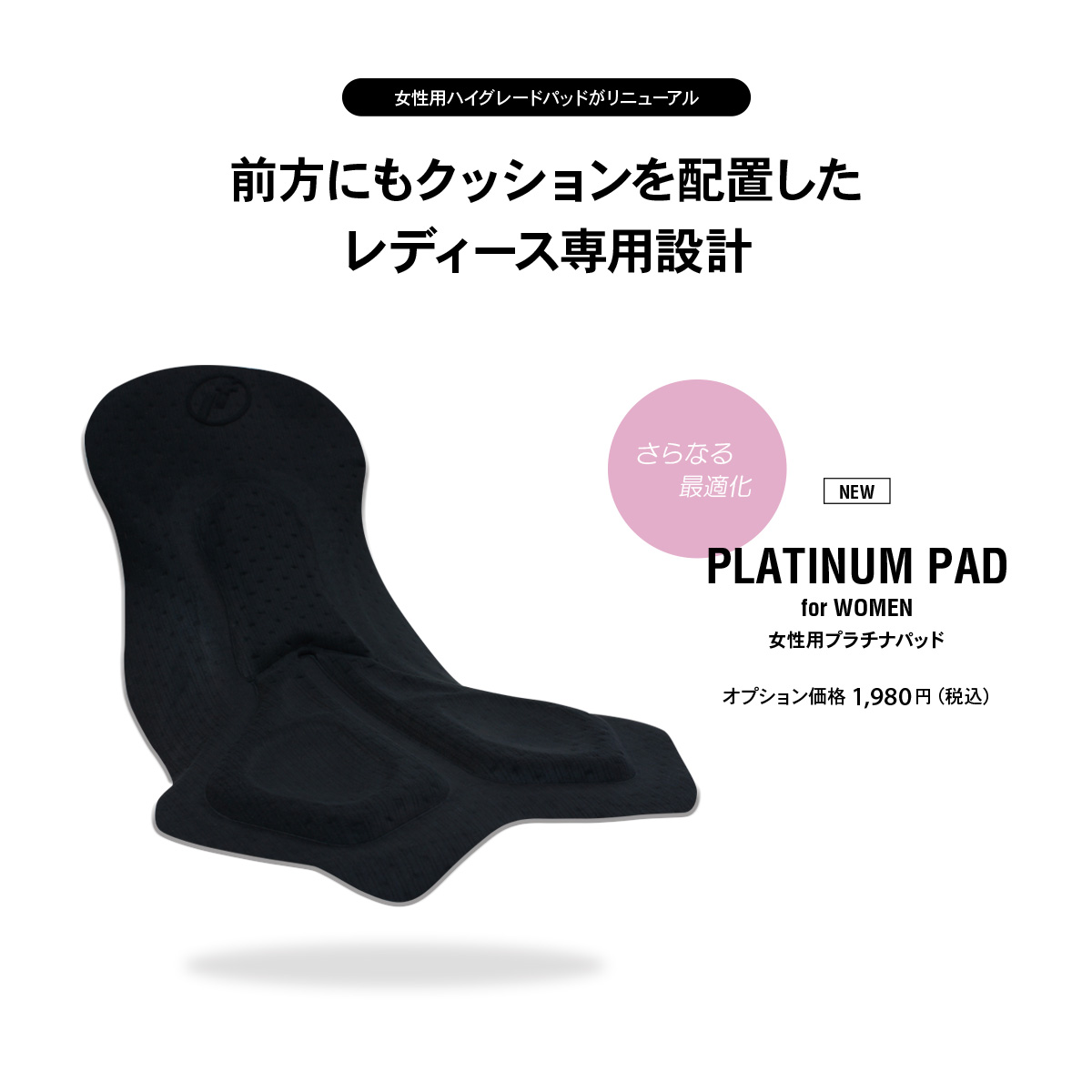 女性用のハイグレードパッド「女性用プラチナパッド」が新たにお選びいただけるようになりました。女性サイクリストの声に耳を傾け、痛みの出やすい箇所に高密度クッションを追加、長時間のライドでも快適にご着用いただけます。もちろん座骨部分のパッドも、男性用ゴールドパッド と同じ、高性能な素材を用い、路面からの振動をしっかりと吸収。レースからカジュアルライドまで幅広くお使いいただけます。